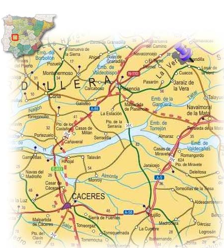 Wenn man von Cáceres kommt ,nimmt man die N-630 bis nach Plasencia und von dort die CC-501 Wenn man von Madrid kommt nimmt man die N-V bis nach Oropesa oder Navalmoral Wenn man von Badajoz kommt via die N-V bis nach Navalmoral Wenn man aus Sevilla kommt nimmt man die N-630 bis nach Merida und von Merida über die Schnellstrasse von Extremadura (N-V) bis nach Navalmoral.